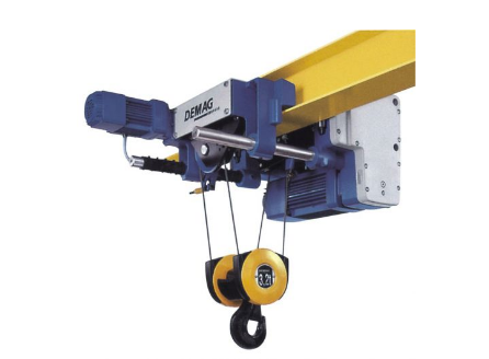 德馬格廠家認為橋架是橋式起重機的基本部件,由主梁、端梁、行走平臺等部件組成。主梁跨中架設,有箱型、桁架型、腹板型、圓管型等結構類型。主梁的兩端與端梁連接,兩根主梁的外側設有行走平臺和安全欄桿。在行走平臺的一側有大車移動機構,在行走平臺的另一側有給大車電氣設備供電的裝置,即輔助滑線。主梁上方鋪設有導軌,供小車移動。整個橋式起重機在大車行走機構的牽引下沿車間長度方向的導軌移動。