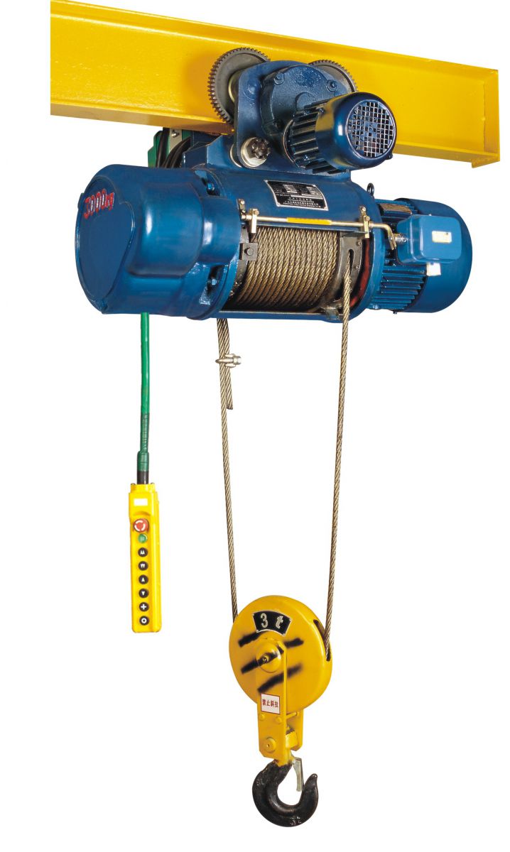 產品簡介: CD型,MD型鋼絲繩電動葫蘆是一種輕小型起重設備,它可以安裝在葫蘆單梁、橋式起重機、門式起重機、懸臂起重機上。稍加改動,還可作卷揚用。因此,它是工廠、礦山、港口、倉庫、貨場、商店等常用的起重設備之一,是提高勞動效率,改善勞動條件的必備機械。