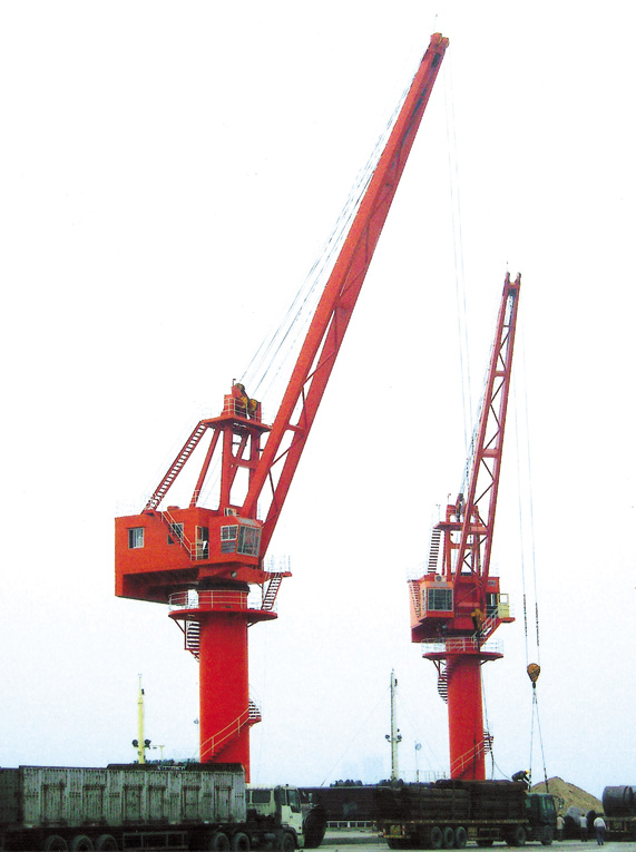 產(chǎn)品簡(jiǎn)介: 吊鉤型港口起重機(jī)采用單臂架、鋼絲變幅和四點(diǎn)接觸球式回轉(zhuǎn)支承結(jié)構(gòu),并設(shè)置滑輪補(bǔ)償裝置,可使貨物近似水平移動(dòng),實(shí)現(xiàn)全幅度帶載變幅,變幅速度較快,作業(yè)效率高,可360度回轉(zhuǎn)。固定式起重機(jī)具有結(jié)構(gòu)新穎,傳動(dòng)平穩(wěn),效率高,操作方便,故障率低等特點(diǎn)。根據(jù)用戶需求,可采用變頻控制,使各機(jī)構(gòu)運(yùn)轉(zhuǎn)更平穩(wěn)可靠。